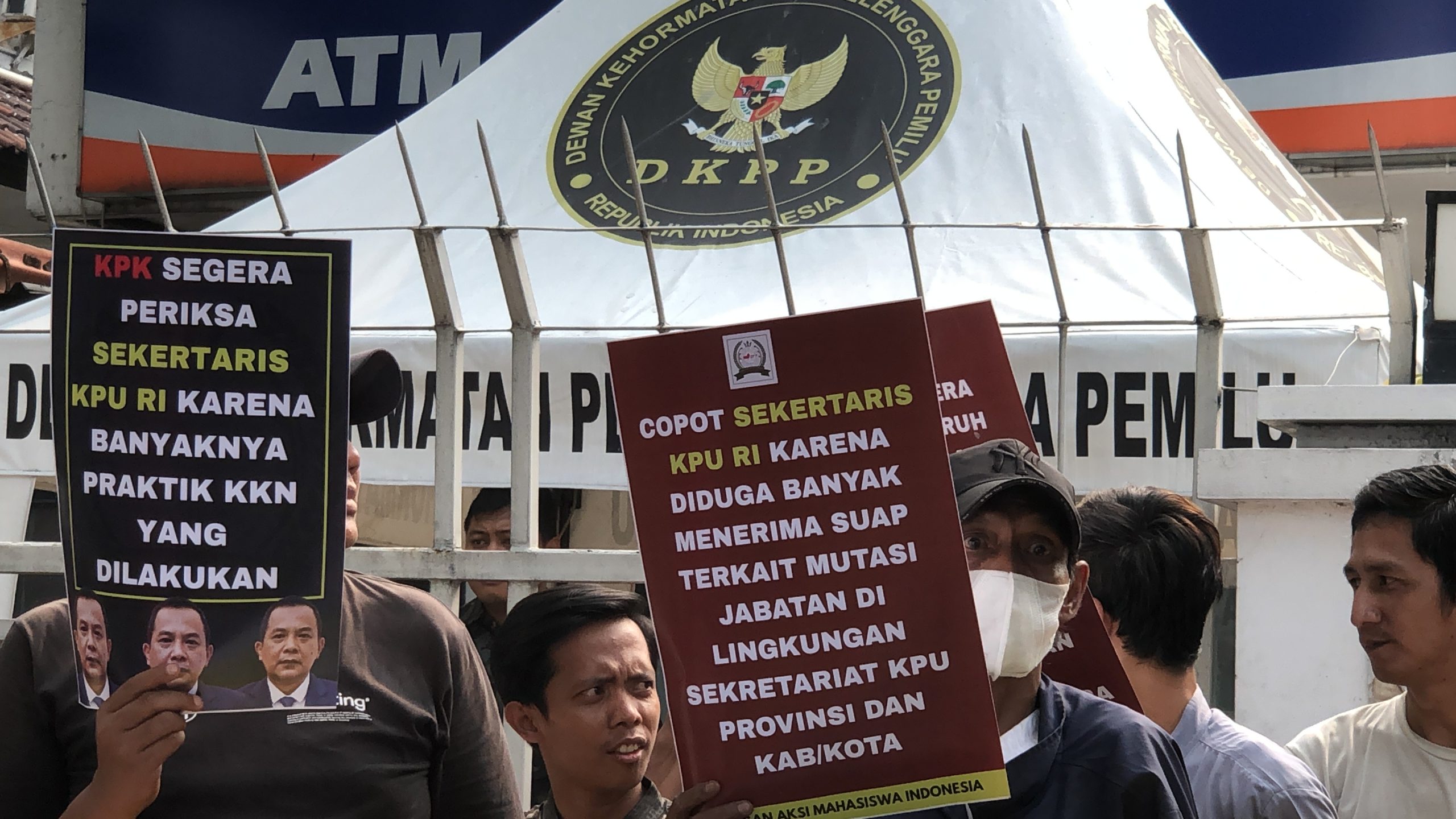 Dalam aksinya, mereka menuntut Dewan Kehormatan Penyelenggara Pemilu (DKPP) RI segera mencopot Sekretaris Jenderal KPU RI, Bernad Dermawan Sutrisno, yang diduga menyalahgunakan jabatan dan anggaran.