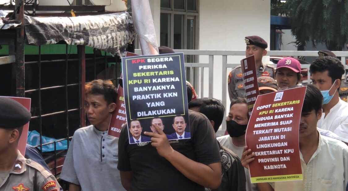NEMUKABAR.COM – Jaringan Aksi Mahasiswa (JAM Indonesia) mengumumkan akan menggelar aksi jilid III pekan depan di Kantor Dewan Kehormatan Penyelenggara Pemilu (DKPP) RI dan Kementerian PANRB RI. Aksi tersebut digelar untuk menekan lembaga terkait segera menindaklanjuti dugaan penyalahgunaan jabatan yang menyeret nama Sekretaris Jenderal (Sekjen) KPU RI.